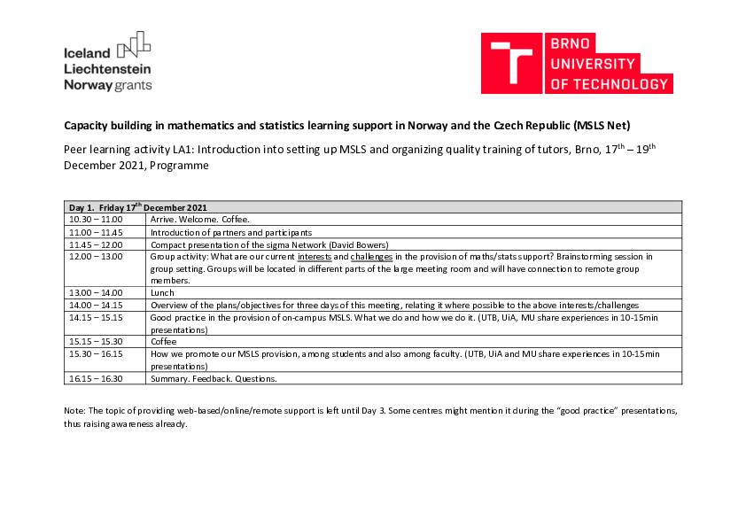 The meeting in Kristiansand was personally attended by 16 colleagues from 5 universities. Participants from 5 partner institutions worked together in plenary and discussed the form and content of anticipated intellectual outputs. Valuable contribution to the discussion was given by Professor Duncan Lawson from the Coventry University (UK), former Chair of the sigma Network. Part of the program was a presentation of the MSLS Net project at the MatRIC Annual Conference on June 2.